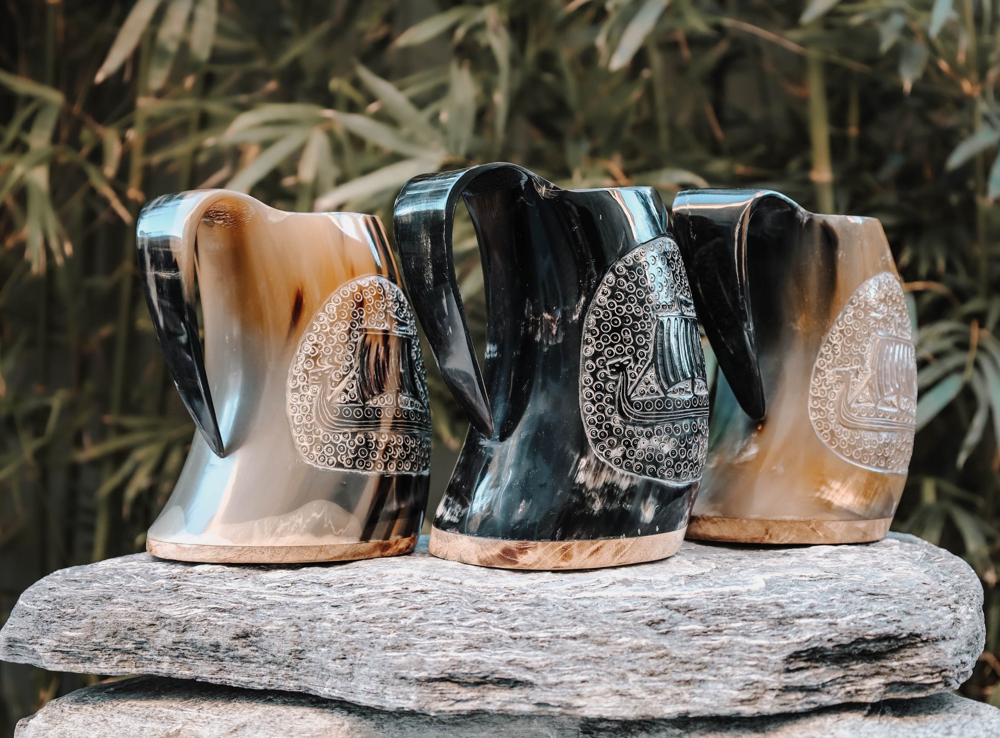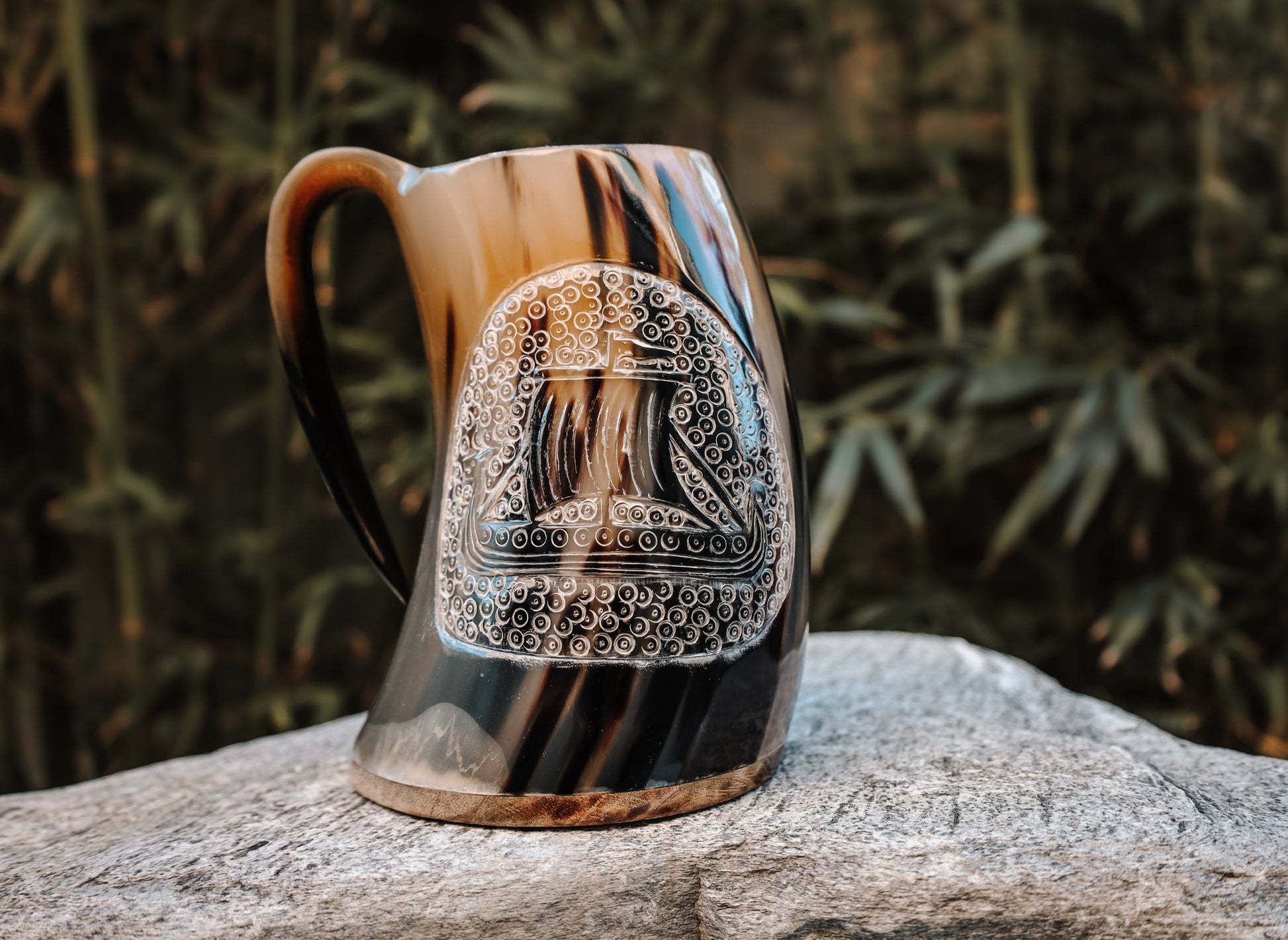 The Viking Battle Ship mug is a work of art that embodies the spirit of the Viking culture. Crafted from real horn and featuring a premium hand-carved depiction of a Viking longship, this mug is a true masterpiece.